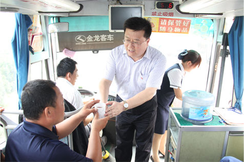 7月21日,集團(tuán)公司工會(huì)辦與總部黨支部組織四十余名總部黨員干部組成暑期“送清涼”服務(wù)隊(duì),來到位于濟(jì)青高速公路上的刁鎮(zhèn)高速公路客運(yùn)站,冒著30多度的高溫為過往客車的乘車旅客和駕駛員,送去一碗碗爽口的綠豆湯。一上午的時(shí)間里,共為過往近百部客運(yùn)車輛、近3000余名旅客送去了夏日的清涼。集團(tuán)公司董事、工會(huì)主席張志堅(jiān)、黨委副書記楊國(guó)強(qiáng)、紀(jì)委書記劉鳳儀、總經(jīng)濟(jì)師馮唯一、總經(jīng)理助理齊杰帶隊(duì)參加了此次“送清涼”活動(dòng)。