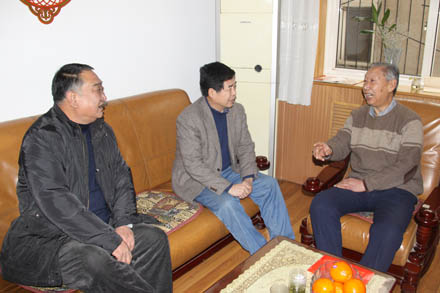 您現在的位置是:首頁 > 集團要聞 省國資委領導走訪慰問集團老黨員 次 集團要聞 發布時間:2012-01-17 18:55:48 省國資委領導走訪慰問集團老黨員 1月17日上午,省國資委巡視員裴建華一行領導在集團公司董事、工會主席張志堅的陪同下,冒雨來到集團,先后前往離退休老黨員、老干部王德明、鄒全會的家中,親切看望了他們的身體和生活狀況,代表省國資委向他們贈送了慰問金,并祝福他們安度晚年、新春愉快。省國資委機關黨委專職副書記王在新、離休干部處調研員王萬珂參加了走訪慰問。 (黨委組宣部、老干部)