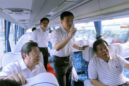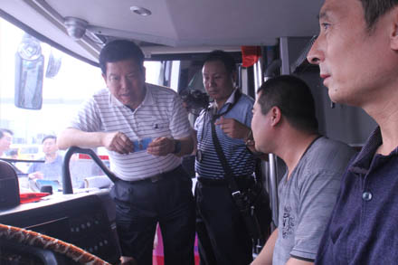 王副局長(zhǎng)先后視察了濟(jì)南長(zhǎng)途汽車總站的安檢、總服務(wù)臺(tái)、檢票、售票、熱線等崗位,與黨的十八大代表、總站金牌檢票員李文親切交談,勉勵(lì)她在平凡的服務(wù)一線崗位上將親情服務(wù)持續(xù)發(fā)揚(yáng)下去。王副局長(zhǎng)一行領(lǐng)導(dǎo)專門登上代臥車、臥鋪車,向安全行車370萬(wàn)公里“零事故”駕駛員、省勞模賈湘鳴及宜昌臥鋪班車駕乘人員詳細(xì)詢問了車輛改造、安全運(yùn)營(yíng)以及車載GPS的使用情況;在安全監(jiān)控中心重點(diǎn)了解了車輛3G視頻及GPS監(jiān)控管理情況。