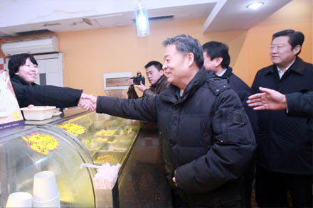 信步走進“家好快餐”慰問工作人員