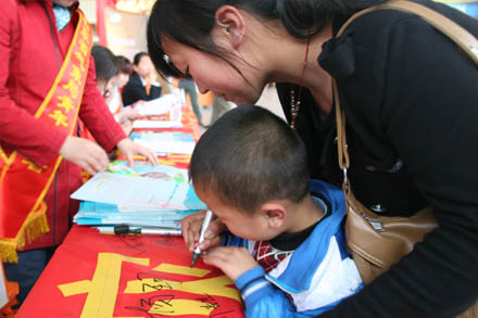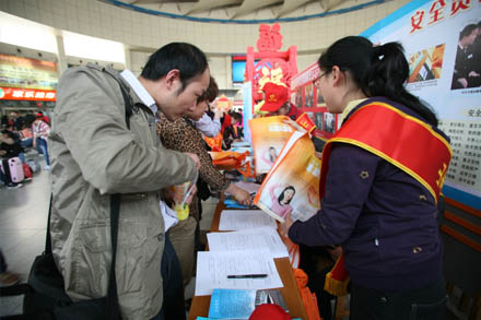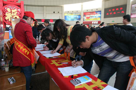 在總站候車大廳關(guān)注災(zāi)區(qū)群眾、祈福平安簽字現(xiàn)場,設(shè)置了氣象災(zāi)難、氣象預(yù)警及預(yù)防科普知識展板,志愿者將宣傳材料發(fā)放到每一名旅客手中,并邀請他們在簽名條幅上寫下對雅安地震災(zāi)區(qū)群眾的祝福話語和姓名,為雅安的災(zāi)區(qū)人民祈福。