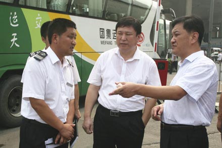 8月14日,集團(tuán)公司董事長(zhǎng)、黨委書記吳宗昌在董事會(huì)監(jiān)事會(huì)辦公室主任單天振的陪同下,冒著高溫酷暑,來到其教育實(shí)踐活動(dòng)聯(lián)系點(diǎn)——濟(jì)南長(zhǎng)途汽車總站,實(shí)地調(diào)研總站黨的群眾路線教育實(shí)踐活動(dòng)開展情況。