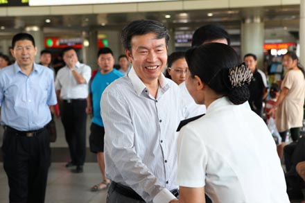 何部長在山東交運濟南長途汽車總站先后視察了售票處、總服務臺、候車廳、安全報班處及集團安全運營監控中心,詳細了解集團企業文化建設、精神文明建設及安全生產相關措施,親切慰問了黨的十八大代表、省交通系統勞動模范李文,山東省勞動模范、安全行車367萬公里無事故安全標兵賈湘鳴等一線員工。