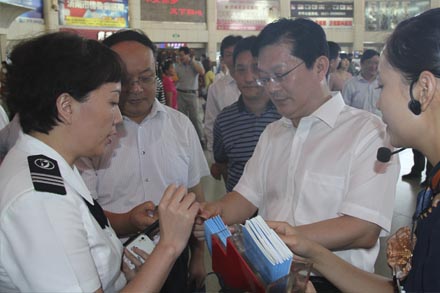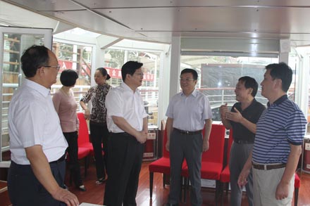 董事長(zhǎng)、黨委書記吳宗昌、總經(jīng)理王謙和黨委副書記楊國(guó)強(qiáng)陪同樊主任一行首先來(lái)到汽車修理廠,先后到了客戶接待室、維修車間和教育實(shí)踐活動(dòng)辦公室,查看了教育實(shí)踐活動(dòng)的學(xué)習(xí)現(xiàn)場(chǎng)、活動(dòng)展板和黨員學(xué)習(xí)筆記,隨同視察了汽車維修的各個(gè)環(huán)節(jié),對(duì)一線員工在維修工作中的小改小革予以肯定和鼓勵(lì)。隨后,樊主任來(lái)到交運(yùn)集團(tuán)物流倉(cāng)儲(chǔ)公司,視察了倉(cāng)儲(chǔ)公司黨支部各教育實(shí)踐活動(dòng)公開欄、顧客交流園地、黨群聯(lián)系服務(wù)站和黨員文明服務(wù)區(qū),與現(xiàn)場(chǎng)作業(yè)的員工及客戶進(jìn)行了親切交談,詳細(xì)了解倉(cāng)儲(chǔ)運(yùn)營(yíng)、管理服務(wù)等情況。在黃河航運(yùn)局船員服務(wù)公司現(xiàn)場(chǎng)調(diào)研中,樊主任仔細(xì)詢問(wèn)教育實(shí)踐活動(dòng)邊整邊改情況,認(rèn)真聽取了船舶工程公司自主研發(fā)、設(shè)計(jì)制造旅游船舶的工作匯報(bào)。最后,樊主任一行來(lái)到省國(guó)資委企業(yè)領(lǐng)導(dǎo)人員管理處黨支部的教育實(shí)踐活動(dòng)聯(lián)系點(diǎn)——濟(jì)南長(zhǎng)途汽車總站進(jìn)行教育實(shí)踐活動(dòng)實(shí)地調(diào)研。樊主任逐一走訪了售票處、總服務(wù)臺(tái)、檢票處、兔兔快運(yùn)熱線、黨的群眾路線教育實(shí)踐活動(dòng)文化區(qū),對(duì)總站各部門豐富多彩的教育實(shí)踐活動(dòng)形式及貼近群眾、貼近實(shí)際、貼近社會(huì)的特色做法給予了高度評(píng)價(jià)。