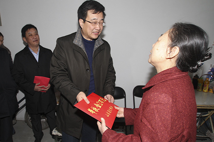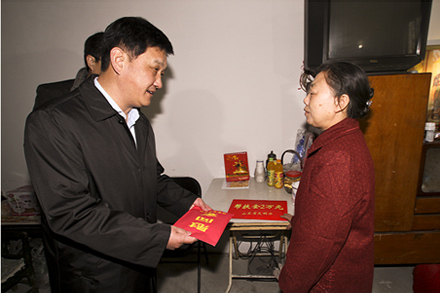 1月26日,省文明辦專職副主任王少杰、省文明辦綜合協(xié)調(diào)處副處長(zhǎng)耿為華、市委宣傳部副部長(zhǎng)、市文明辦主任彭壽謙、副主任曹湧在集團(tuán)公司董事長(zhǎng)、黨委書記吳宗昌、黨委副書記楊國強(qiáng)等同志的陪同下,親切看望了宋洋母親,分別為其送去慰問金、節(jié)日禮品和新春祝福。