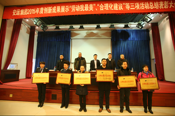 1月11日,集團公司2015年度創(chuàng)新成果展示、“勞動我最美”、“合理化建議”等三項活動總結表彰大會在多功能廳舉行。集團領導班子成員、總部各部室、各基層單位黨政工主要領導、部分職工代表和獲獎者代表共200余人參加了會議。大會隆重表彰了長途汽車總站等6個“勞動我最美”活動優(yōu)勝單位、總站南區(qū)等6個合理化建議先進單位、19個創(chuàng)新成果、18個“五小”活動優(yōu)秀成果和李衛(wèi)東等215名“最美勞動者”。