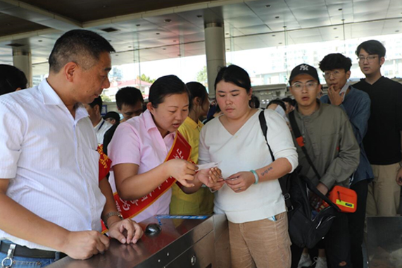 黃金周期間,集團(tuán)公司黨委、團(tuán)委廣泛發(fā)動(dòng)各單位黨團(tuán)組織開(kāi)展主題黨日、團(tuán)日活動(dòng),引導(dǎo)非客運(yùn)單位黨員、團(tuán)員青年骨干到總站南北兩區(qū)各候車(chē)大廳和發(fā)車(chē)場(chǎng),為旅客提送行李、導(dǎo)乘指引,努力分擔(dān)一線(xiàn)服務(wù)人員工作壓力;集團(tuán)總部黨總支以5個(gè)黨支部為單位,結(jié)合自身業(yè)務(wù)范疇,積極協(xié)調(diào)、合理安排,在運(yùn)輸最繁忙時(shí)期充實(shí)到車(chē)站現(xiàn)場(chǎng),進(jìn)行業(yè)務(wù)協(xié)調(diào)、車(chē)輛調(diào)配、安全監(jiān)督以及客流疏導(dǎo)。22名管理人員戴起黨徽、袖章,分布在一線(xiàn)相關(guān)崗位,亮身份、樹(shù)形象,為繁忙的運(yùn)輸工作盡心竭力。各客運(yùn)公司、車(chē)站團(tuán)組織成立志愿服務(wù)隊(duì),根據(jù)運(yùn)輸形式,組織本單位團(tuán)員青年開(kāi)展跟車(chē)服務(wù)、現(xiàn)場(chǎng)協(xié)助、利用青年人善于使用網(wǎng)絡(luò)技術(shù)的特點(diǎn),引導(dǎo)旅客手機(jī)購(gòu)票,大大緩解了站內(nèi)排隊(duì)購(gòu)票的緊張局面。