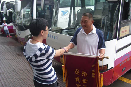 2012年7月2日,第一客運公司濟南至曲阜線路魯A46982駕駛員史元成同志,駕車抵達曲阜客運站,在整理車內衛生時,發現有旅客遺落在車內的筆記本電腦一臺。史元成同志立即通知曲阜客運站,并設法尋找到了失主曲阜孔女士??着拷舆^筆記本電腦后萬分激動,當場拿出兩條香煙以示謝意,被史元成同志婉言謝絕,并表示這是身為山東交運一名普通駕駛員應該做的??着渴指袆?,對史元成同志這種拾金不昧的高尚品德和良好的職業情操表示贊許:“山東交運能夠有像史師傅這樣的優秀駕駛員,也反映出你們公司是真正的誠信經營、熱情服務。我信任你們!”