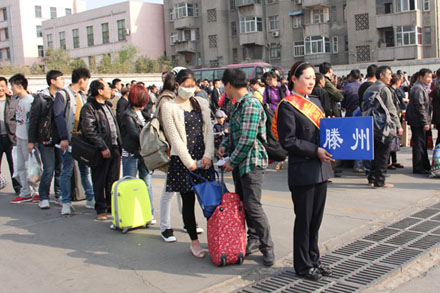 總站南區在清明小長假期間,繼續沿用一隊兩牌的順隊方式,在客流驟增前,啟用臨時發車場,確定線路排隊位置,從而確保旅客乘車秩序良好。同時,借鑒“導游旗”作用,制作了醒目的黃色引導旗,引導旅客進站購票和排隊乘車。繼續實行首問負責制,方便旅客能夠最快的掌握車站發車信息,處理好旅客相關反映問題的處理。總站各科室還努力做好服務創新工作,針對清明踏青旅客,推出了“出行自由行,景點隨心配”的服務,依托車站短途線路優勢,開通了明水、平陰“賞泉游”,商河、東平“溫泉游”,僅明水今天就發送“賞泉游”旅客300余人。