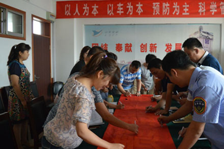 近日,第三客運(yùn)公司舉行了《控事故·治違章·安全管理提升月》活動啟動儀式?;顒佑砂踩a(chǎn)事故警示教育培訓(xùn)周、隱患排查治理周、應(yīng)急預(yù)案演練周和安全生產(chǎn)知識競賽四項(xiàng)活動組成。計(jì)劃在8月份,第三客運(yùn)公司將集中開展應(yīng)急預(yù)案演練、強(qiáng)化隱患排查治理、宣傳法律法規(guī)等活動,通過隨車行、GPS監(jiān)控、教育培訓(xùn)等手段,加強(qiáng)宣傳“強(qiáng)化紅線意識、促進(jìn)安全發(fā)展”和“一崗雙責(zé)、綜合治理”的理念,達(dá)到嚴(yán)控違章駕駛等違規(guī)行為,杜絕較大以上行車責(zé)任事故的目標(biāo)。其中,在8月13日開展安全生產(chǎn)宣傳咨詢?nèi)掌陂g,公司全體職工參加了安全知識小競賽、安全謎語猜猜看、安全小知識普及、安全演講等一系列宣傳咨詢活動,聆聽了《生命是花,安全是根》演講,職工們積極參與活動的各個環(huán)節(jié),氣氛熱烈,最后大家在橫幅共同簽字,表示將居安思危,防微杜漸,推動公司安全生產(chǎn)工作穩(wěn)定發(fā)展。