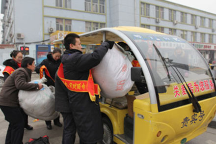 一是送溫暖暖人心。南區(qū)團(tuán)員們利用業(yè)余時(shí)間熬制了紅糖姜水,在早上9:00和下午14:00,分別為候車旅客免費(fèi)送飲,為冬日候車的旅客送去了暖暖的情誼和貼心的服務(wù)。二是送行李免等待。在濟(jì)洛路總站南區(qū)站牌,設(shè)立了2個(gè)流動(dòng)服務(wù)崗,安排專車為乘公交轉(zhuǎn)乘到車站的旅客提供免費(fèi)行李推送服務(wù),并設(shè)立購票顧問和流動(dòng)售票員,不但減少了旅客的排隊(duì)購票的麻煩,還縮短了購票乘車的時(shí)間。三是送提醒保安全。團(tuán)員們在公交站牌設(shè)立了安全崗,倡導(dǎo)旅客安全乘車,拒乘黑車,并向旅客派發(fā)安全乘車提醒卡,告知旅客安全乘車常識和如何辨別黑車。