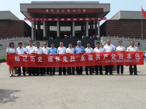 一是結合近期開展的“三嚴三實”專題教育,組織黨員干部在錦東會議室召開了“嚴以修身”專題教育研討交流會。二是結合自身實際,開展了“送清涼”活動,向工作在一線的員工和駕乘人員送去了降溫茶、防暑藥品和礦泉水,送去了公司的關懷與問候。三是開展了走訪慰問活動,看望了兩名困難黨員并送去了慰問金。四是全體黨員前往臺兒莊大戰紀念館,學習英雄事跡,進行深刻的愛國主義教育。五是結合集團公司工會開展的“征集紀念中國人民抗日戰爭暨世界反法西斯戰爭勝利70周年‘中國夢、勞動美、愛國情’職工書畫、攝影展作品”活動,推薦了《臺兒莊戰役紀念館浮雕》 《修理工》2幅攝影作品參展,激發廣大職工銘記歷史、緬懷先烈、珍愛和平、開創未來的愛國情懷。