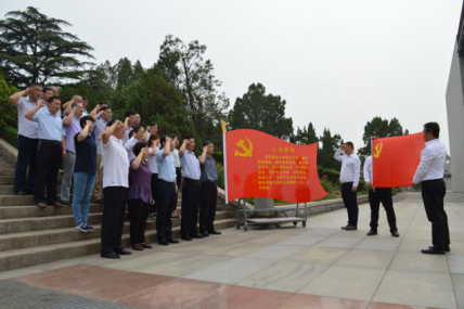 隨后,大家來到革命烈士紀念塔前為長眠在這里的1809名革命先烈敬獻了花籃,面對鮮艷的黨旗再一次重溫了入黨誓詞。