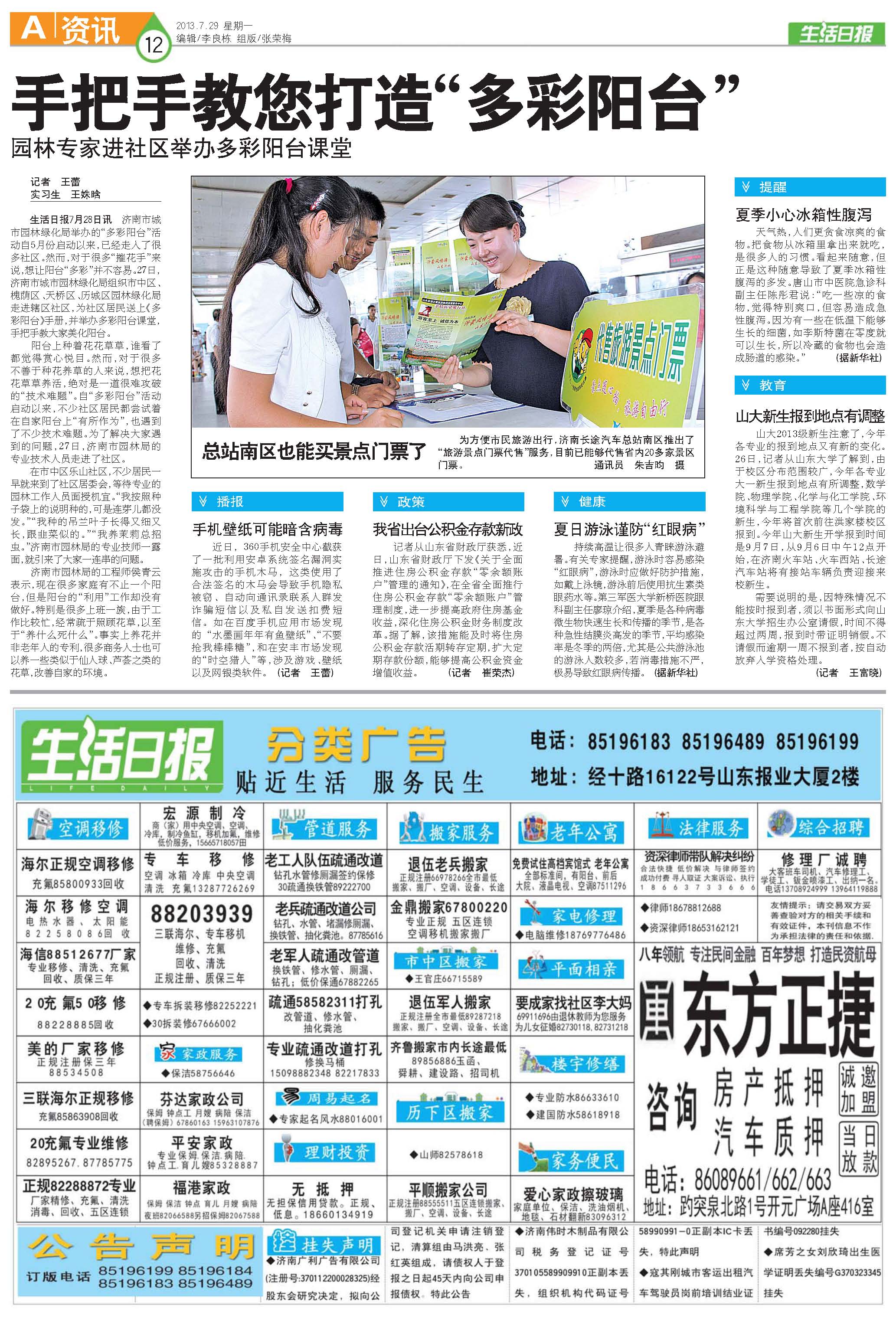 您現(xiàn)在的位置是:首頁(yè) > 媒體聚焦 《生活日?qǐng)?bào)》--總站南區(qū)也能買景點(diǎn)門票了 次 媒體聚焦 發(fā)布時(shí)間:2013-07-29 15:15:24
