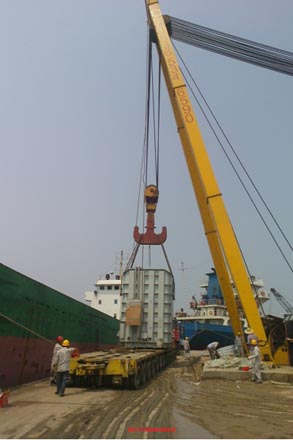 為充分發(fā)揮大件碼頭和山東海河陸運第一座大型吊車的重要作用,實現(xiàn)區(qū)域大件海運、港口裝卸、陸運一條龍服務,羊口港務局利用公路、港口優(yōu)勢與濟南奔騰運輸有限公司簽訂了5—10年的長期合作協(xié)議,主要自羊口港為國家電網(wǎng)定向輸出特高壓直流、交流大型變壓器設備(單件重量245T,體積10M×4M×5M),2014年預計運輸150T-500T重量設備30臺左右,吞吐量將增加近萬噸。目前,已經裝卸大型變壓器7臺,其他設備4臺,累計實現(xiàn)收入近30萬元。