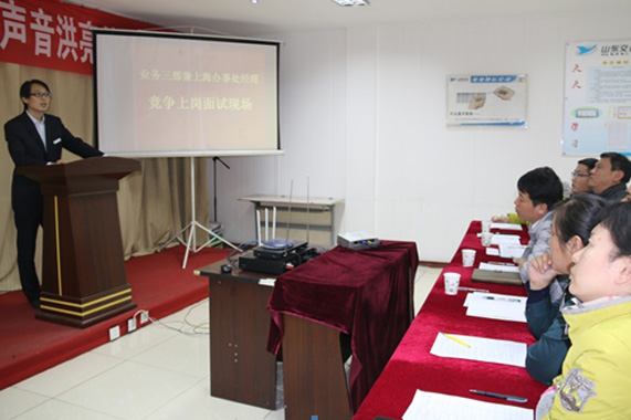 本次的崗位競聘由公司領導班子擔任評委,本著“公開、公正、公平、擇優(yōu)”的原則,按照自主報名、閉卷考試、現(xiàn)場答辯的程序進行。競聘過程中,演講答辯現(xiàn)場氣氛緊張而熱烈,競聘者積極踴躍,充分展現(xiàn)出了自己的潛力和實力。最終一線業(yè)務骨干張明以第一名的綜合成績競聘成功。