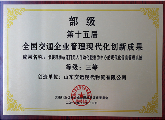 日前,山東交運現代物流有限公司憑借道口無人自動化控制為中心的現代化信息管理系統,在與全國眾多知名企業同臺競技中嶄露頭角,榮獲全國交通企業管理現代化創新成果三等獎(部級)。